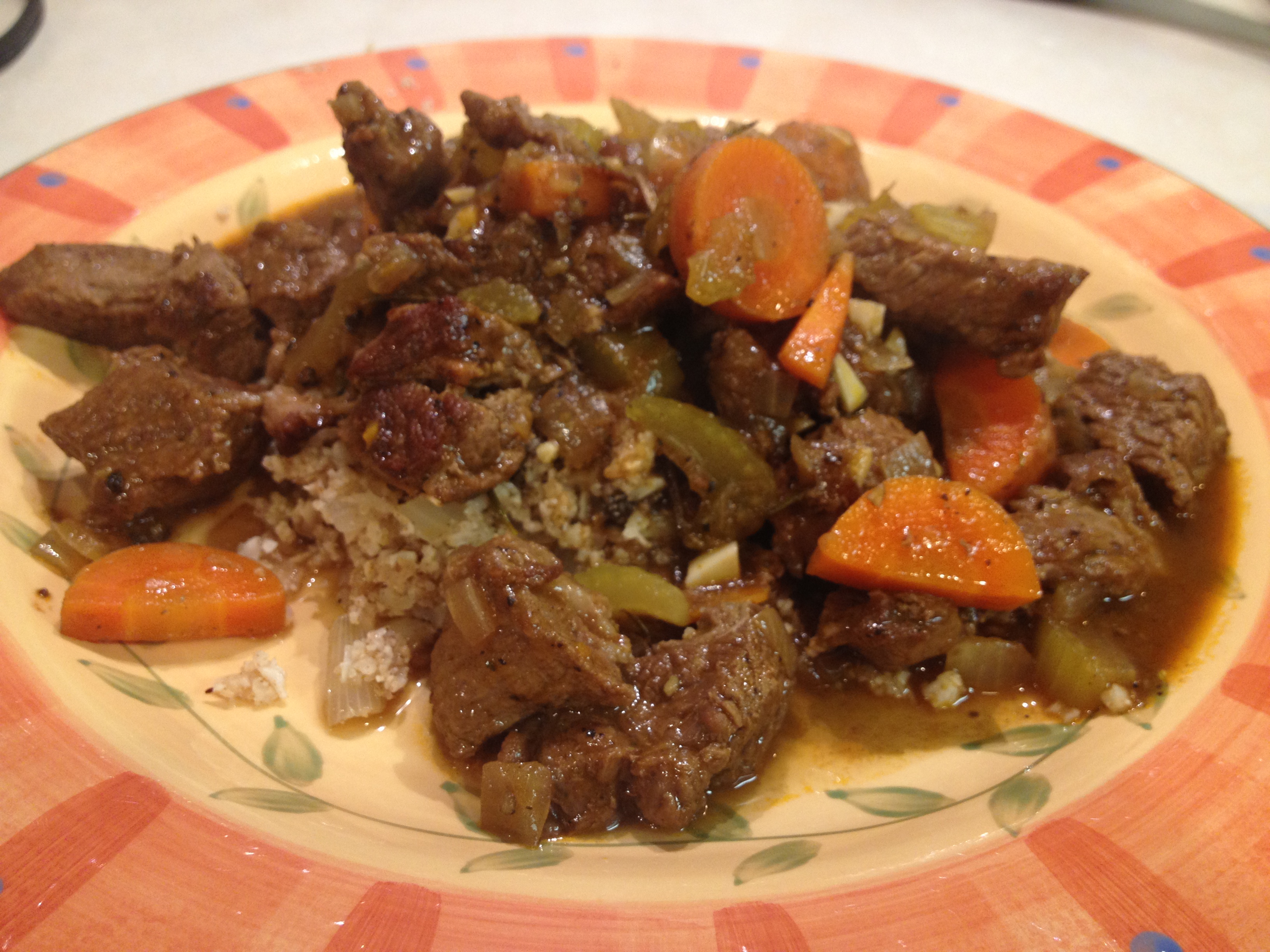 Typical breakfast of 4 eggs, sausage and vegetables. Cinnamon Beef Stew from Well FedIMG_2507