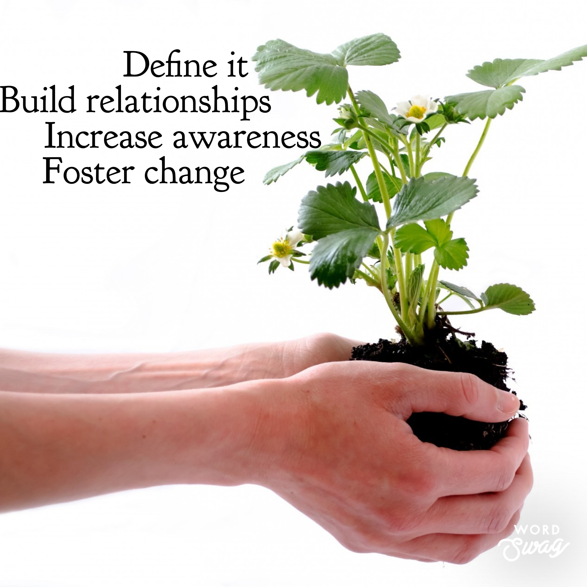 - Define the terms and share your knowledge. Become comfortable discussing these issues in your safe, close community before talking with your larger community (work, school, etc.)